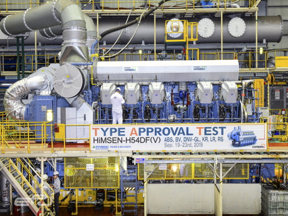 현대중공업은 지난 2012년 디젤과 가스, 두 가지 연료를 쓰는 이중연료 힘센(HiMSEN)엔진을 최초 개발한 이후 친환경 선박엔진 시장을 주도하고 있다.