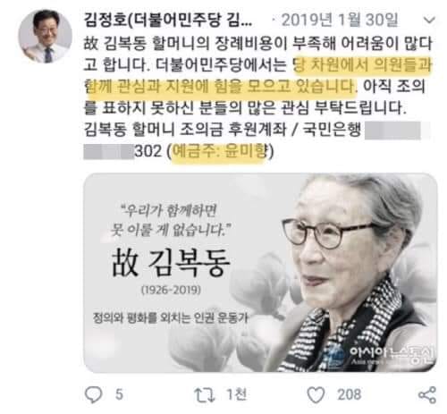 たくさんの関心をお願いします。国民銀行XXXXXX、口座名義人:ユン・ミヒャン】
