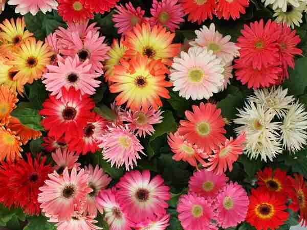 花はガーベラだね。残念ながら紅白の花びらが1枚おきになっている品種はないもよう。>>37