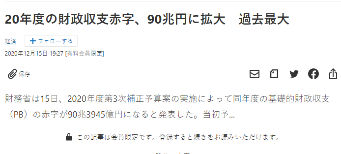 問題は現在の財政出動の資金を借りるアテがあるかどうかで、中央銀行や海外から引っ張ればインフレが懸念されるんだが、現在は未曾有の金余り状況なので何とかなると信じてもたぶん大丈夫。>いままで無利子で貸してくれたり、立て替えてくれてた優しい日本