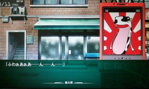 アニメで「お詫びと補償を求めるNIDA」のセリフ。ゲームで携帯の画面に旭日旗模様。