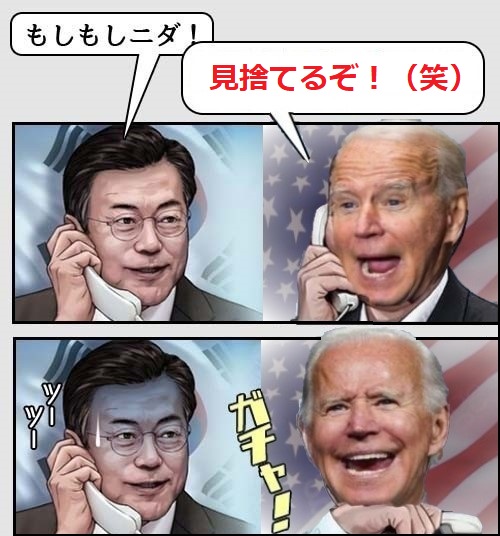 まあ、当の大韓民国人はそんな事、毛先ほども感じていないみたいだけど。バイデン大統領は慰安婦合意に関与しているのだよ。「色々蒸し返すな。さもなくば未来はない。」とバイデンからいわれたのだろ。未来を決めろよ。と言っても情緒で破滅の未来しか選べない文大統領。否、朝鮮人であれば誰でも未来は選べないな。