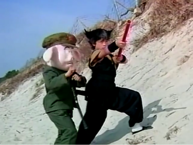 狐面&暴走族の特攻服&日本刀でしょうか?そこに日の丸?