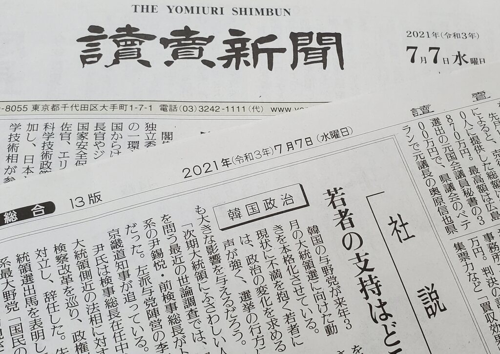日本の日刊紙の中で最も発行部数が多い読売新聞は7日、「若者の支持はどこに向かうのか」と題し、社説で与野党の主要大統領選候補として李在明(イ·ジェミョン)京畿道知事と浮上した尹錫烈(ユン·ソクヨル)元検察総長に関して論評した。