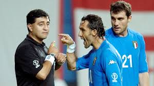 전반전 7분에 비에리가 김태영 선수와 헤드볼 경합 도중에, 비에리의 팔꿈치에 김태영이 부딪혀서 콧등이 확실히 부서졌다. 출혈도 발생했기 때문에, 그 때 비에리는 최소한 경고 조치를 받았어야 했었다. 이러한 반칙은 그 다음회인 독일 월드컵부터는 가차없이 퇴장 판정을 받을 수준이다.