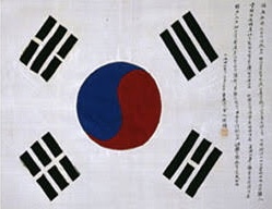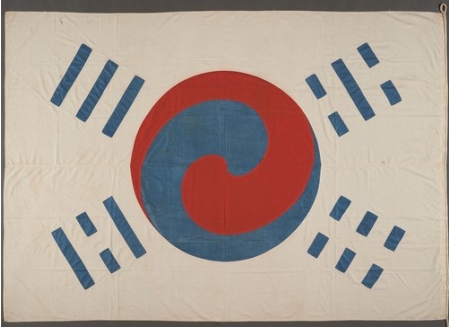 大韓民国臨時政府主席だった金九が、1941年に中国から米国に向かうベルギー人神父に渡した。同胞に光復軍支援を頼む金九の直筆文が旗の右側に書かれている。
