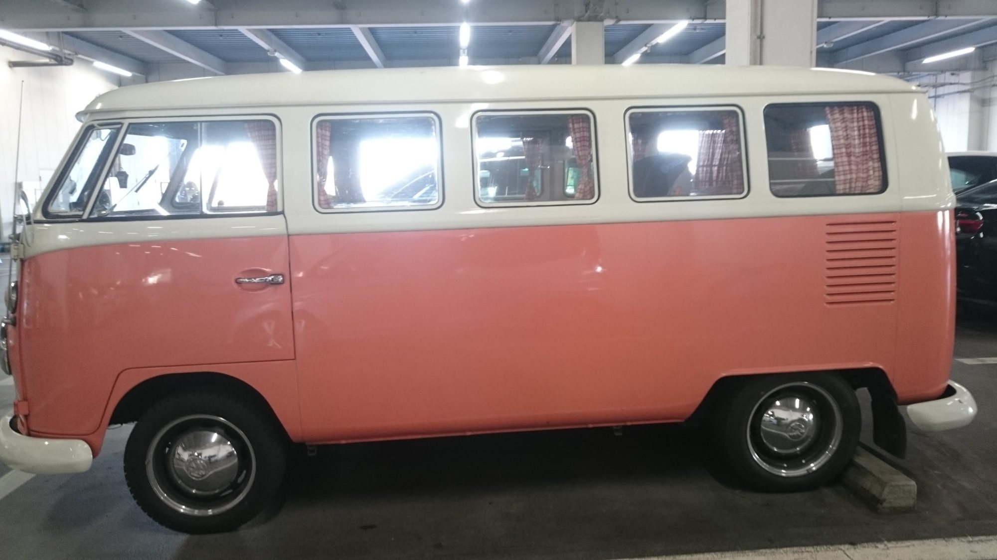 ワーゲンのクラシックな感じのやつが駐車場にいる