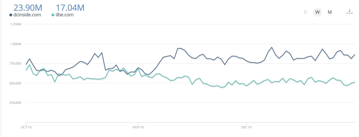 30日、米国のデータ分析会社シミラーウェブ(SimilarWeb)の統計によると、昨年9月イルベの一日平均訪問数は70万4000だったが、今年1月に入って23日まで一日平均訪問数は約52万2000に減った。