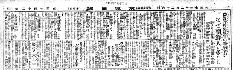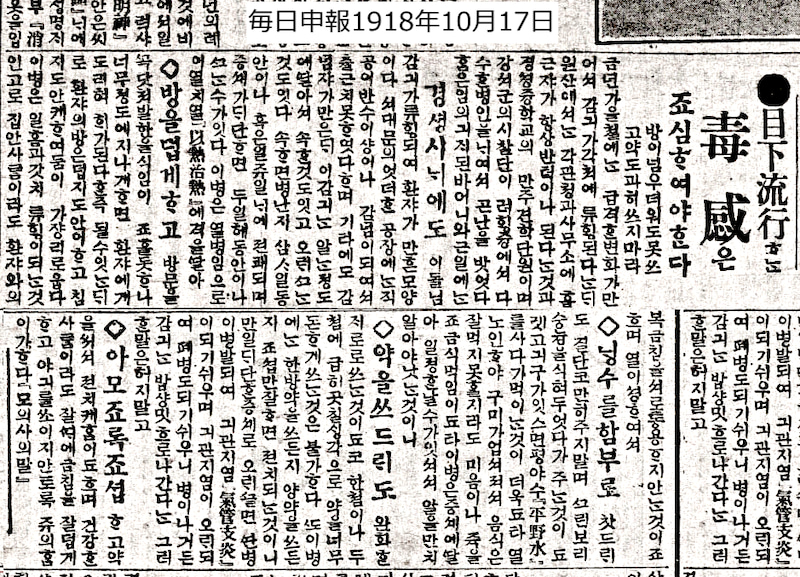 当時、朝鮮で14万人以上がスペイン風邪で死亡したと記録されている。