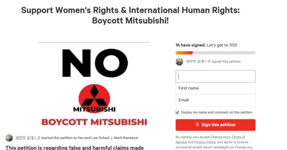28日(現地時間)、世界最大請願サイト「チェンジ・ドット・オーグ」(change.org)には、三菱製品の不買運動を展開しようという内容の請願が掲載された。