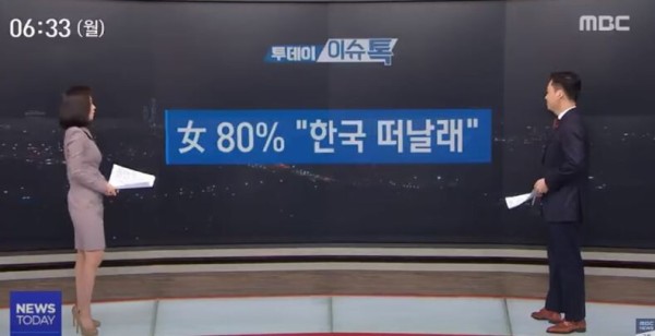 국가의 청년의 75 % "한국을 떠나 살고 싶다"
