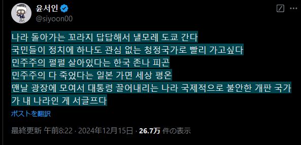 大統領の失踪にとても満足している在日韓国人は、韓日関係を良くしています(笑)