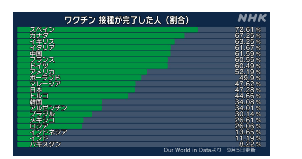 または、ワクチンの有効性なら、幾つかのワクチン接種先進国を見ればいいですね。イスラエルなんか、2回接種が進んでも感染がして3回目接種が3割越えて、4回目を準備していますね。