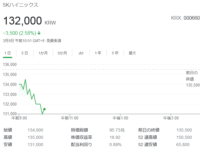 時価総額上位銘柄は入り混じった状態である。SKハイニックス、サムスンSDI、カカオ、現代モービスなどが1〜2%台安を記録しているのに対しPOSCO、LG生活健康は1%以上上がっている。