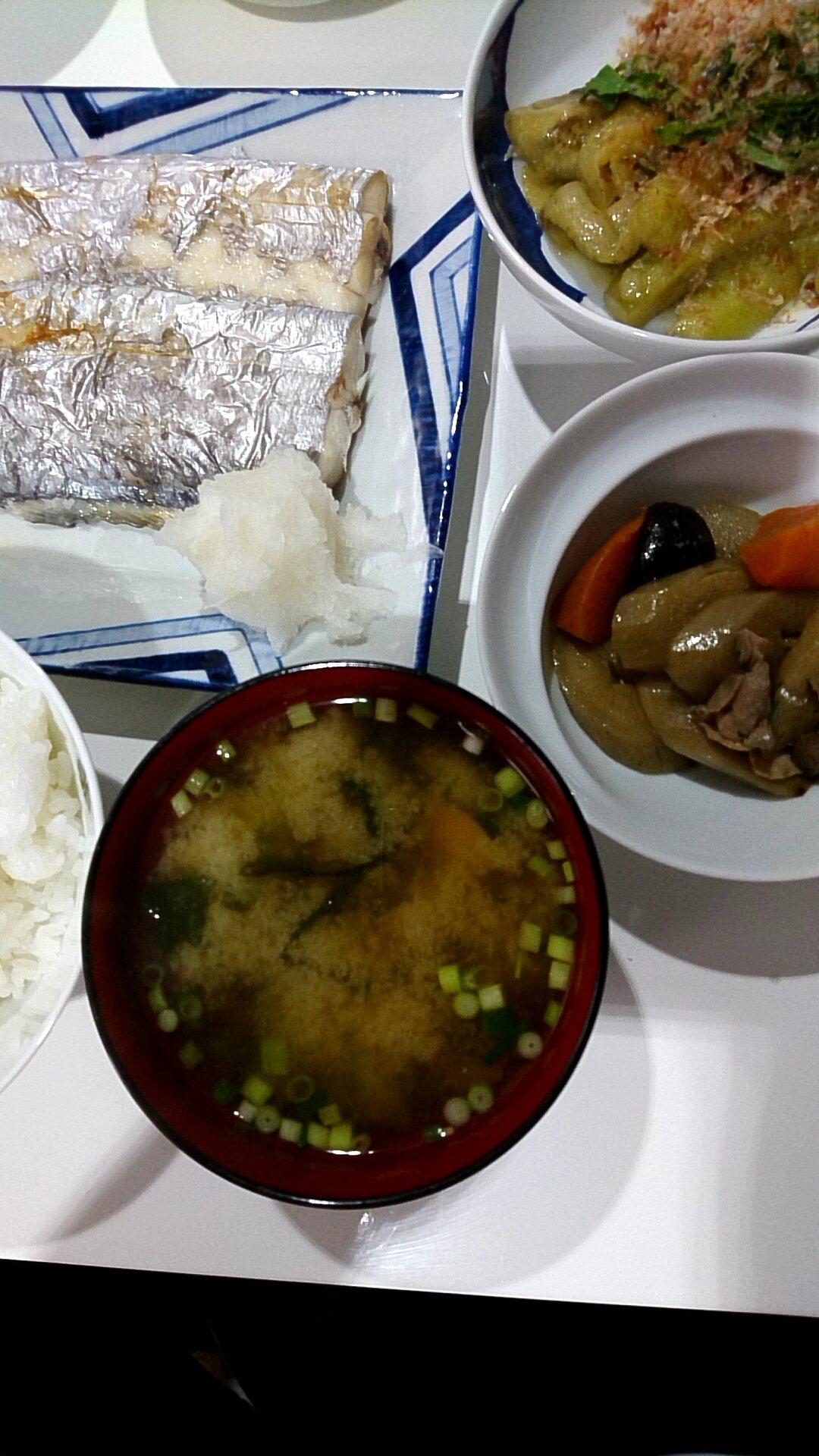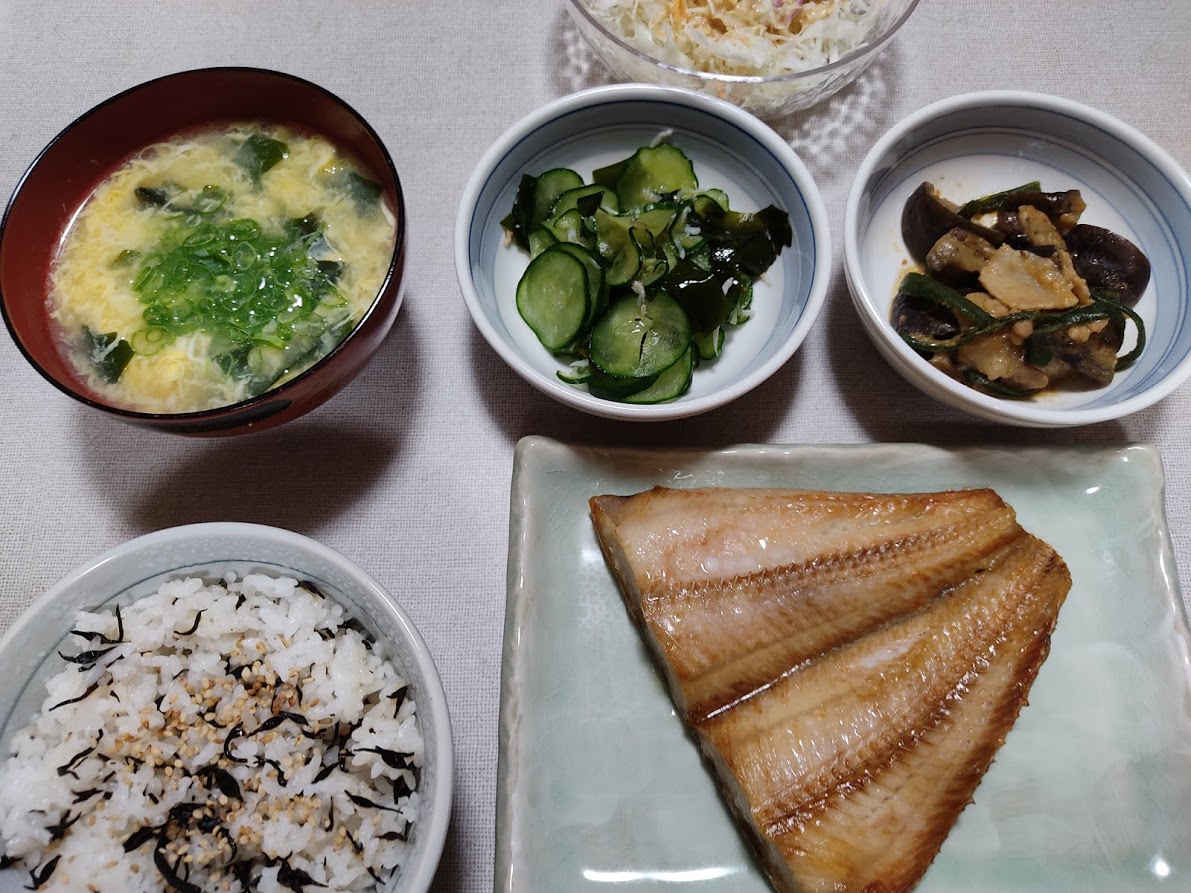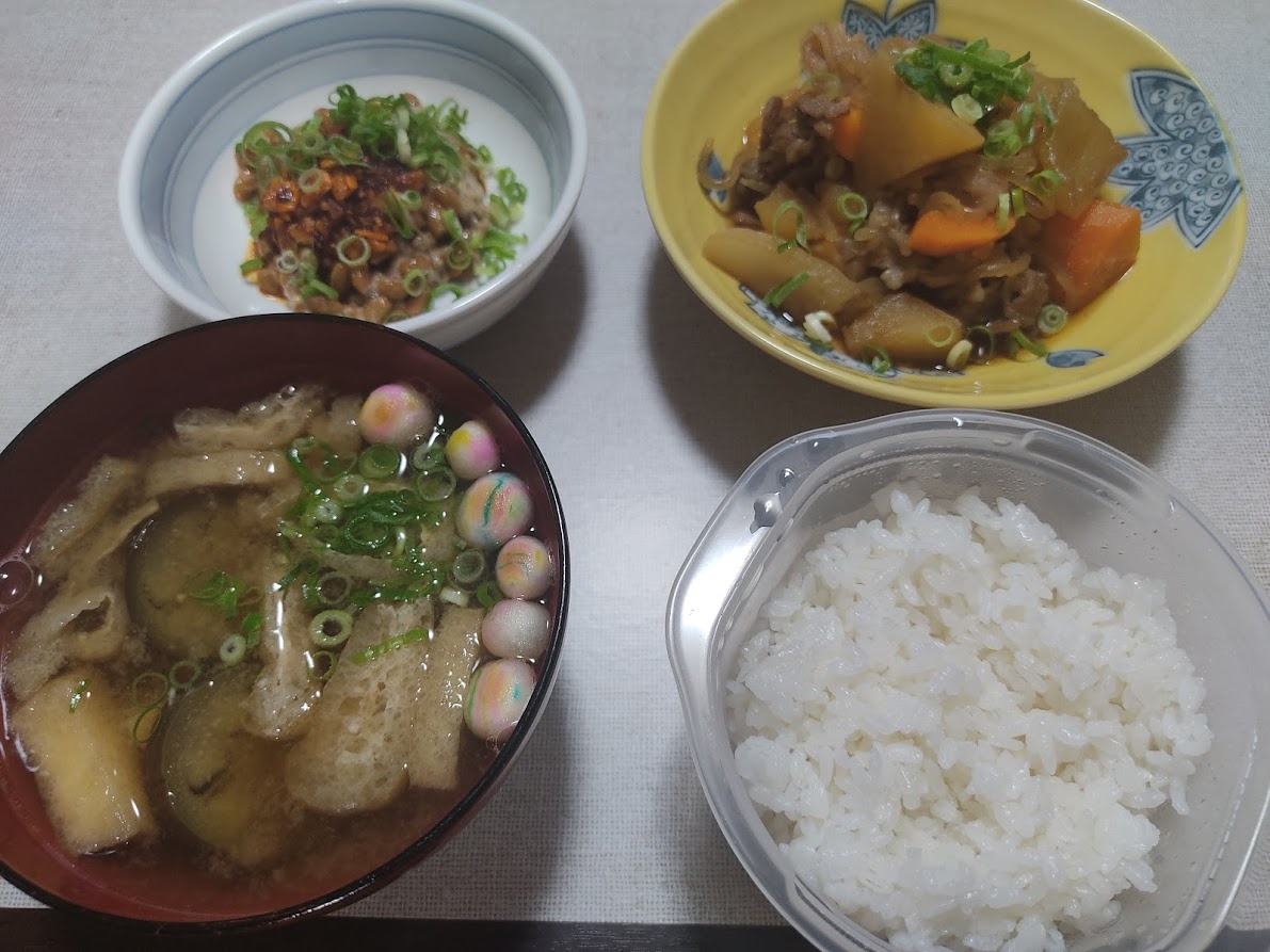 今夜は茄子の味噌汁だけ作ってあとは残り物の寄せ集めニダ(๑¯ω¯๑)