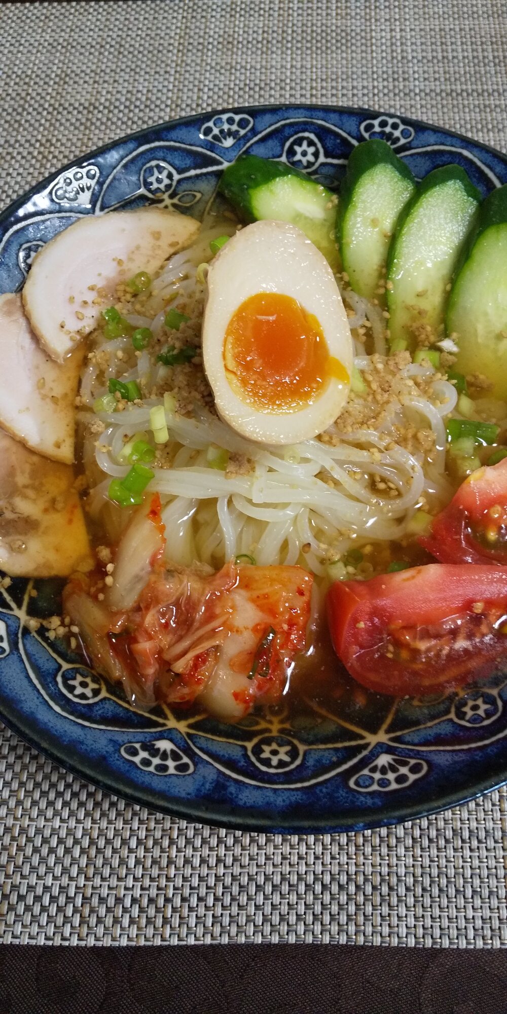 豆乳冷麺、作り方をメモしておけば良かったそうめんつゆに南高梅