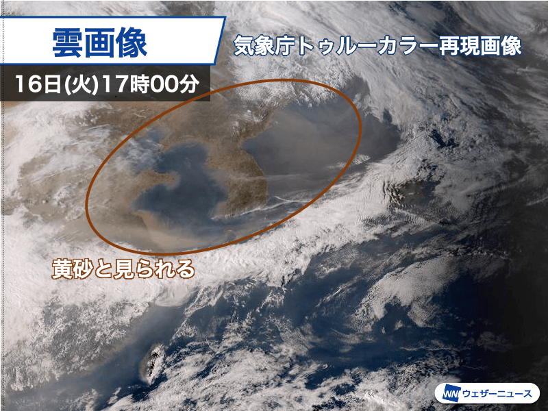 今日16日(火)は中国大陸の東部や朝鮮半島で、黄砂が観測されています。