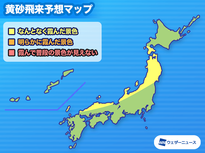 ただ、中国で見られたように非常に視界が悪くなることはなく、空がうっすらと霞むかどうかくらいになる予想です。念のため、駐車場に停めてある車にカバーを掛けるなどしておくと安心です。
