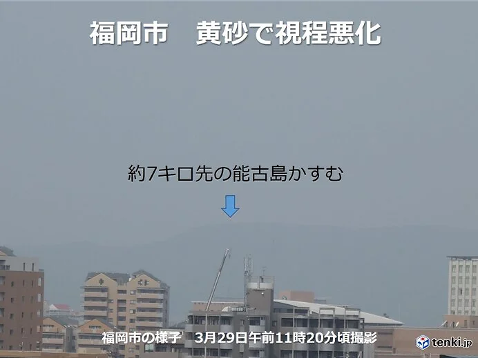 きょう29日(月)昼前、福岡市で黄砂が観測されました。九州はあす30日(火)にかけて、大陸から濃い黄砂が飛来する可能性があります。