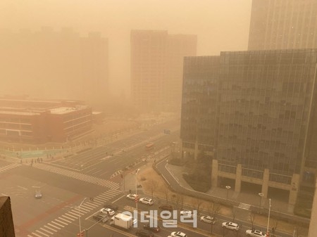 前日、中国北京を含む北方地域に10年ぶりに最悪の黄砂が襲った。内モンゴル高原・ゴビ砂漠・中国北東地域に源を発する今回の黄砂は、北風に乗って南下して16日午前、韓半島(朝鮮半島)西側地域を中心に全国を影響圏に置くものとみられる。韓国気象庁は17日には黄砂が次第に弱まるだろうと予想している。