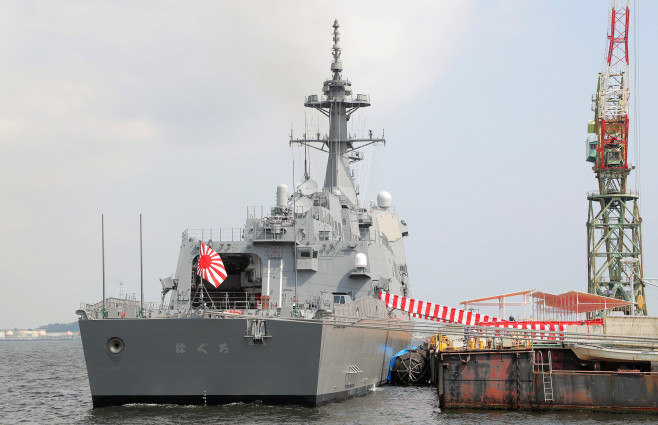 海上自衛隊の最新鋭イージス艦「はぐろ」が完成し、防衛省への引き渡し式が19日、ジャパンマリンユナイテッド横浜事業所磯子工場(横浜市)で行われた。はぐろ就役で、弾道ミサイル対処能力の向上に向け、2013年に閣議決定された「防衛計画の大綱」が掲げたイージス艦8隻体制が整った。