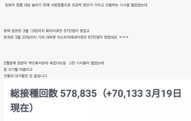 朝鮮人って本当にバカだよな。2月終わり頃の韓国の、もうすぐ日本の接種回数を追い越す!みたいな内容のホルホル記事についた韓国人コメントによると、