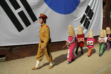 日本統治がそんなに誇らしいのか。日本人憲兵に子供連行させて極大対局旗飾るとか、どんな精神構造してるんだろ?かなり逝ってるような・・・平和に見えるけどな