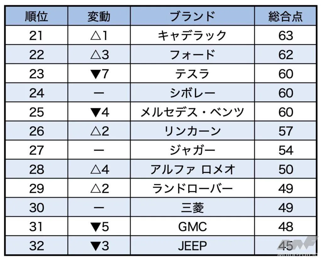 アメリカ・コンシューマー・レポート「2021年の自動車ブランド別総合ランキング」