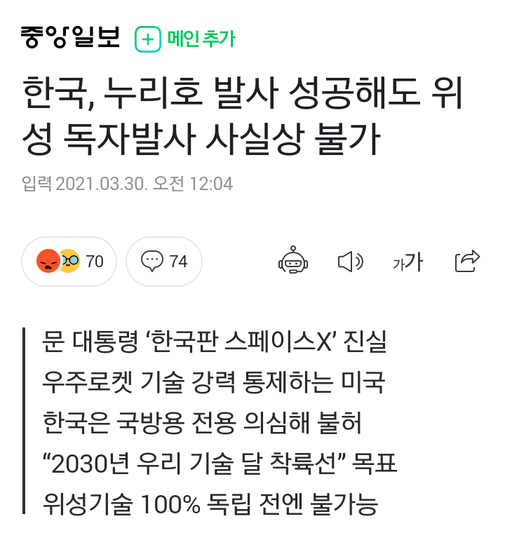 一方、科学技術情報通信部は2022年8月に米スペースXのファルコン9ロケットを利用して韓国型月軌道船を打ち上げる予定だ。月軌道船が宇宙に成功裏に進入すれば来年末ごろ月軌道に無事に到着するのが目標だ。月軌道進入にも成功すれば月軌道船は2023年1月から12月まで1年間にわたり本格的に月を研究する予定だ。