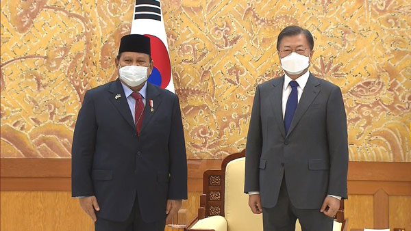 文在寅(ムン・ジェイン)大統領が8日、青瓦台(チョンワデ、韓国大統領府)でインドネシアのプラボウォ・スビアント国防相と会談した。