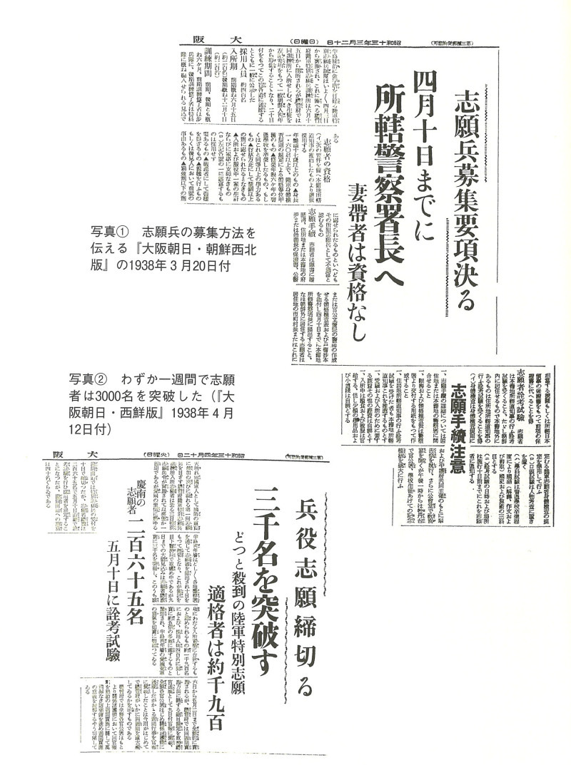 例えば日本軍の朝鮮人志願兵制度が導入されたのは1938年だが1943年度には朝鮮人志願者が30万3394名で6300名合格が合格