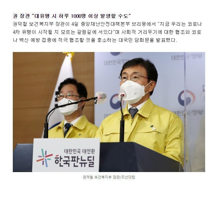 정부 코로나 4차 대유행 갈림길 백신접종 협조해달라