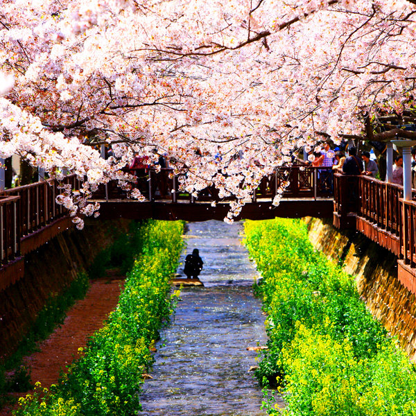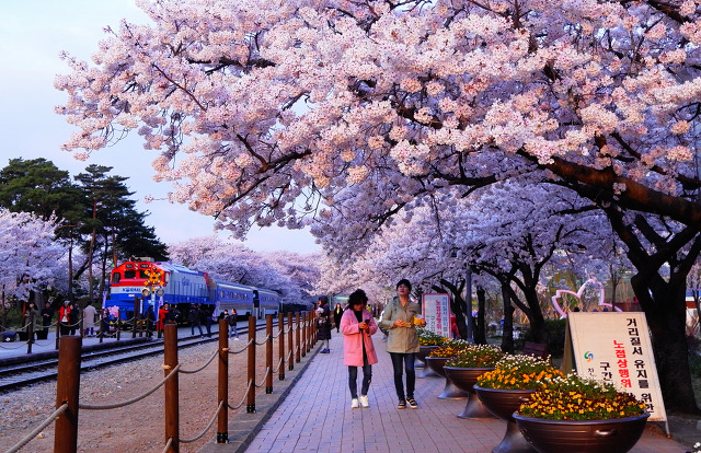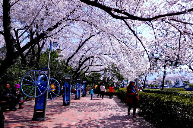在日韓国人達が寄贈した数万株の桜が半島全域に広がっている