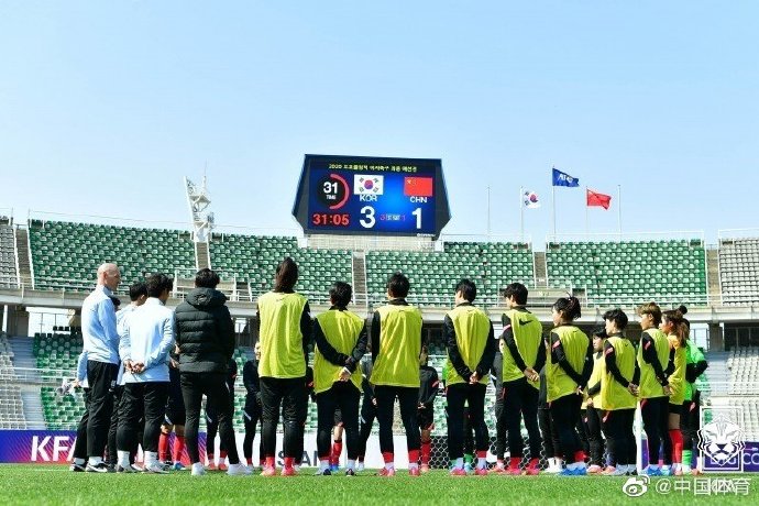 第1戦は韓国京畿道高陽市で8日午後4時にキックオフ予定となっているが、このほど、大韓サッカー協会が発表した韓国女子代表チームの練習風景の写真が物議を醸した。写真には、韓国代表が練習しているスタジアムの電光掲示板に「韓国3-1中国」と表示されている様子が映っている。