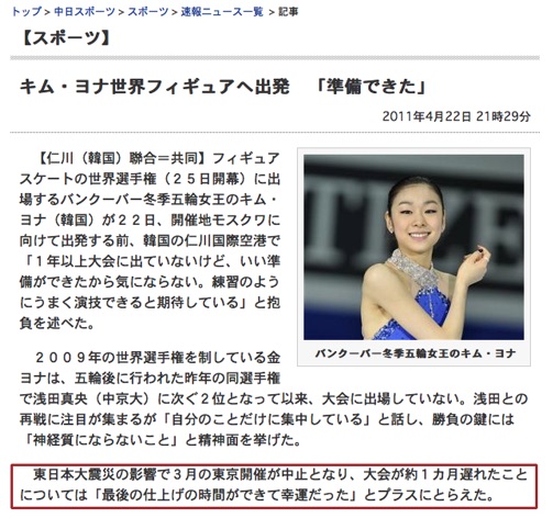 「競技前にカロリーナ・コストナー(イタリア)が鼻血を出していた姿を見て“血を見れば運が良いんだけど”という気がすることはした。良いジンクスが出てきたら持ってつけるほう」