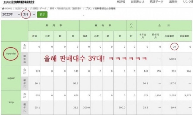 そもそもドイツじゃどっちも対して売れてない普通の自動車も1年間に12台しか売れなかった現代自動車、近々日本から完全撤退だね。