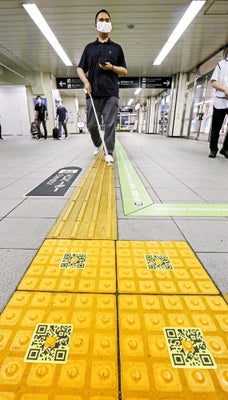 QRコードとスマートフォンを使い、駅構内を音声で案内する視覚障害者用システムの実証実験が、JR西日本の山陽新幹線・新神戸駅(神戸市)で進められている。