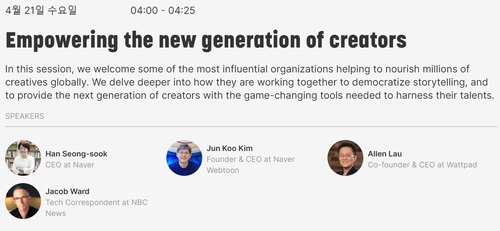 同社の韓聖淑(ハン・ソンスク)社長は、21日の「コリジョン」でNAVERウェブトゥーンのキム・ジュング社長、ウェブ小説プラットフォーム「Wattpad」創業者のアレン・ラウ氏と「クリエーター新世代の強化」をテーマに鼎談(ていだん)を行う予定だ。3社のトップは、グローバル戦略や知的財産(IP)エンターテインメント産業の未来などについて議論。今後の構想にも言及する見通しだ。