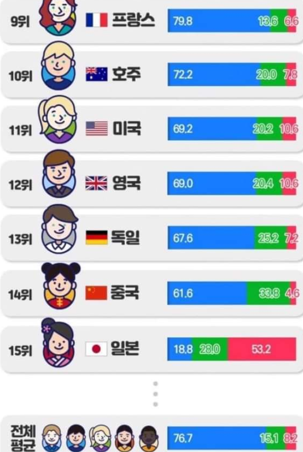 それでも白人国家すべてが韓国に対してネガティブが多いという結果が出ているよ。