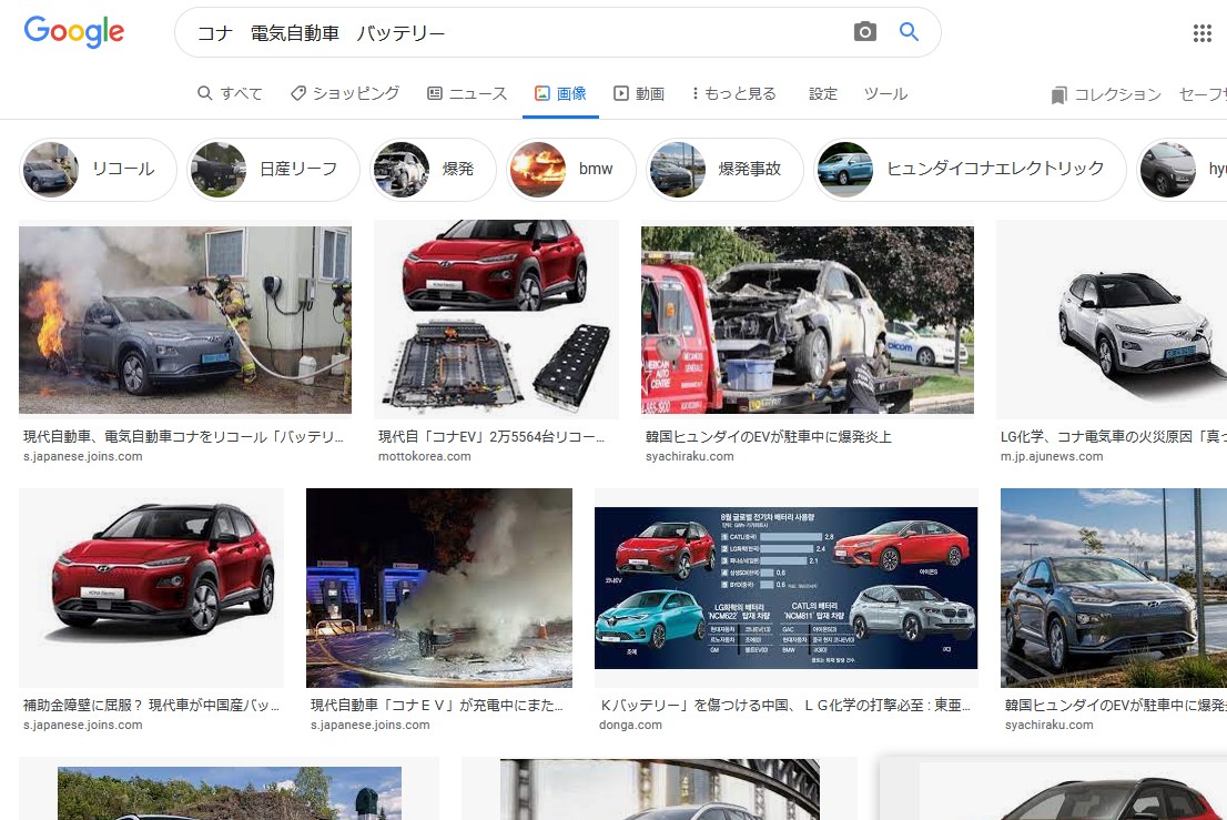 コナ 電気自動車 バッテリー の検索画面な
