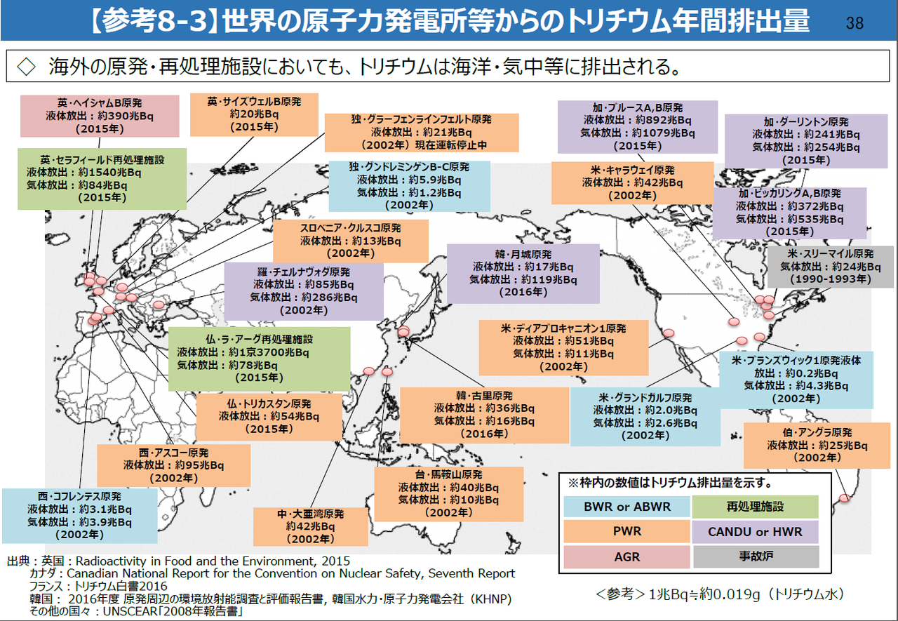 福島第一原発に貯留されている現在のトリチウム総量は1000テラベクレルなので、月城原子力発電所の累積放出量はその約6倍にあたる>>20