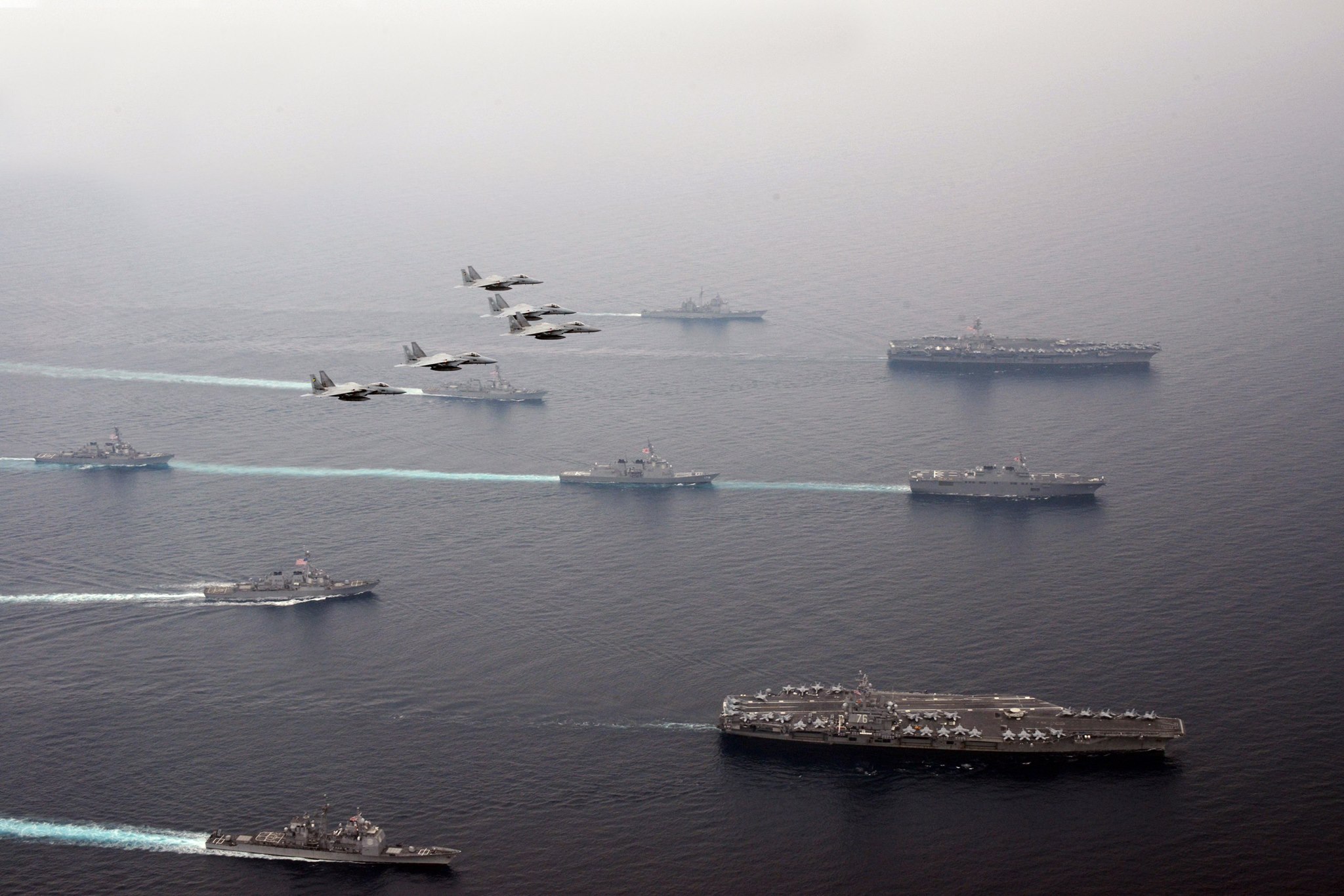 訓練してるのか?日本・アメリカ・イギリスなどの海洋国家連合海軍は誰が見ても 現在世界最強の海洋勢力である。