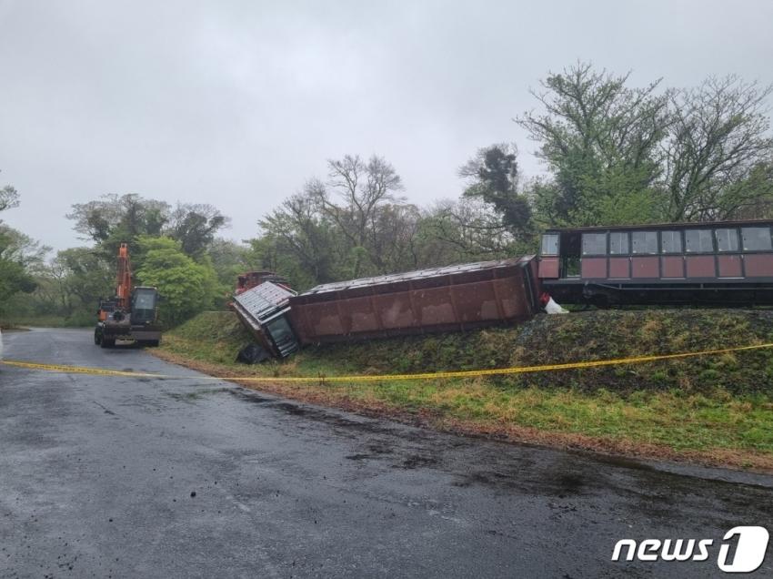 記事によると、同日午後2時30分ごろ、エコランドテーマパークで観光客と運転手37人が乗車した森探訪観光体験用の列車4両中2両が横転。37人のうち1人が重傷、残り36人は軽傷を負ったという。
