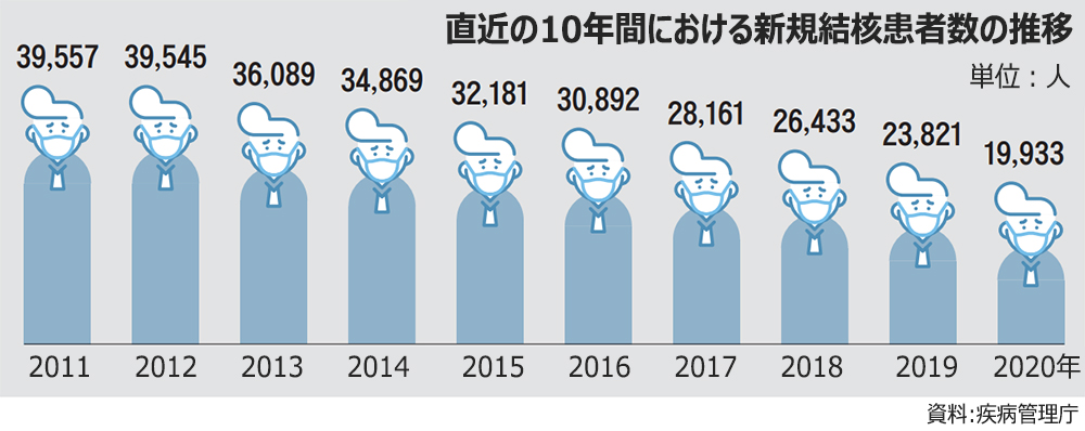 韓国で新規の結核患者数が昨年初めて1万人台にまで減少した。しかし年間を通じてマスクの着用や手洗いなどコロナの感染対策が続いたことを考えれば、減少幅はさほど大きいとは言えなかった。感染症の専門家は「結核の感染対策はそれだけ難しいものであり、予防と早期発見・治療に力を入れるべきだ」と指摘する。この機会に改めて手綱を締め、「韓国=結核王国」という国際的な汚名を返上せねばならないということだ。