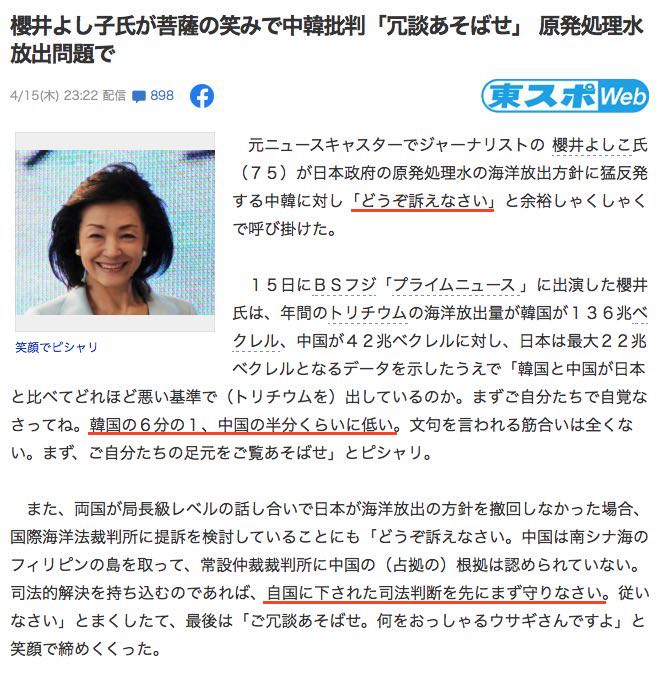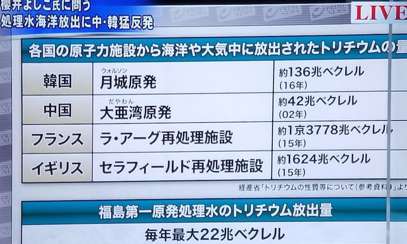 韓国は自分達の方が多くのトリチウムを流出しているのに、それを隠して日本を非難した。