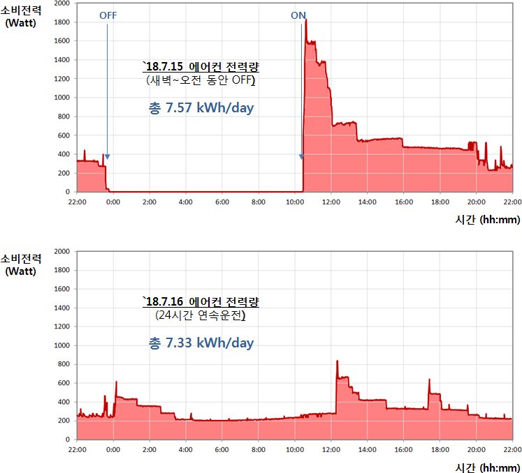 정속형 에어컨 쓰던 시절은 전기비가 아까워서 1시간씩 껐다 켰다가 일반적이지만