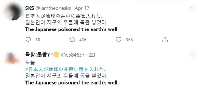 ツイッターには、「日本人が地球の井戸に毒を入れた」は、ツイートこのハッシュタグをつけて拡散している。