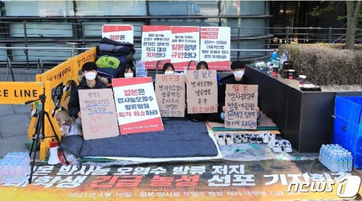 日本大使館前では、16日から、処理水の海洋放出に反対する学生団体が座り込みを続けているが、許可なしでの座り込みは、韓国の法律違反にあたる。