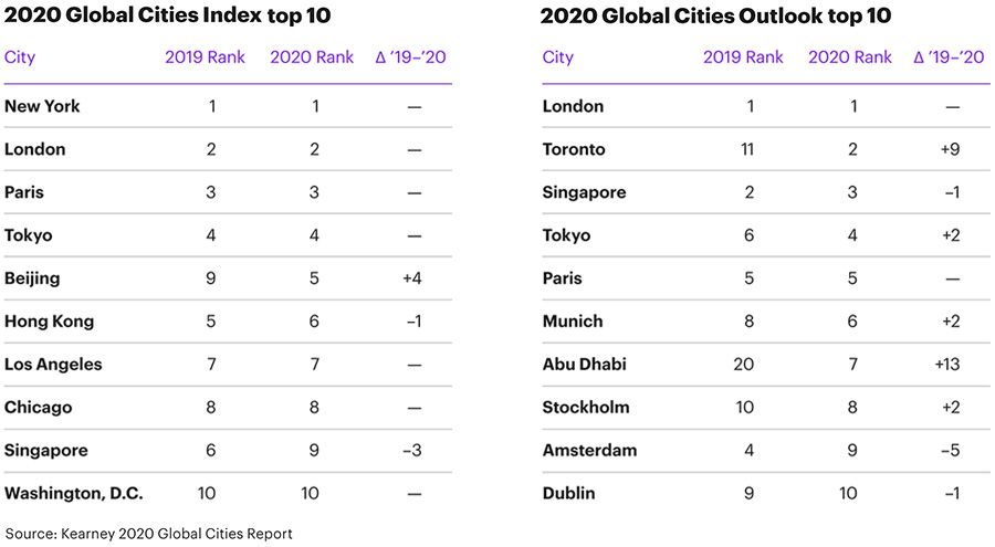 2020 Global Cities Index top10