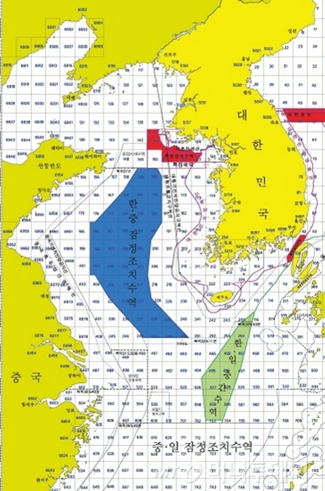 ・実施してる水域は「中韓・暫定水域) 画像の青の部分